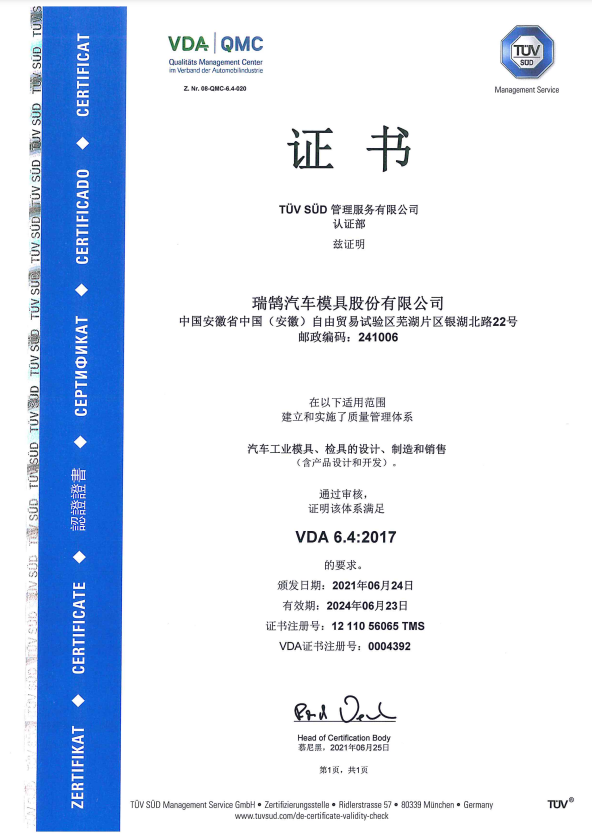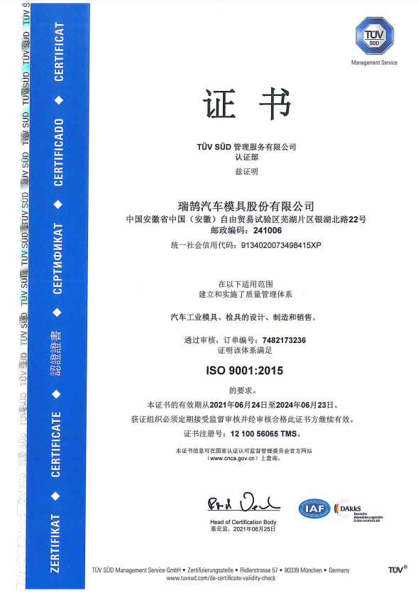 ????????瑞鵠汽車模具股份有限公司成立于2002年3月,坐落于中國(guó)(安徽)自由貿(mào)易試驗(yàn)區(qū)蕪湖片區(qū)銀湖北路 22 號(hào),股本數(shù)18360萬,公司的主營(yíng)業(yè)務(wù)為汽車沖壓模具、檢具及焊裝自動(dòng)化生產(chǎn)線的開發(fā)、設(shè)計(jì)、制造和銷售,主要產(chǎn)品有沖壓模具(覆蓋件模具、高強(qiáng)板模具)及檢具、焊裝自動(dòng)化生產(chǎn)線、一體化鋁壓鑄零部件,為國(guó)內(nèi)少數(shù)能夠同時(shí)為客戶提供完整的汽車白車身高端制造裝備、智能制造技術(shù)及整體解決方案的企業(yè)之一。